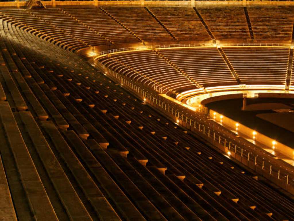 Das erste Stadion hier wurde vom Redner Lykurg 330 v. Chr. für die Panathenäischen Spiele erbaut — ein Fest zu Ehren der Göttin Athena. Athleten traten im Laufen, Ringen, Wagenrennen und musikalischen Wettbewerben an.