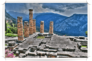 Храм Аполлона. Место, где предсказывала Пифия (самая знаменитая наркоманка античности). Храм был когда-то исписан философскими тезисами древних греческих мудрецов. Амфитеатрально расположенный в лоне скал Федриад храм, прежде всего в виду панорамы Пифийской долины, завораживает зрителя.