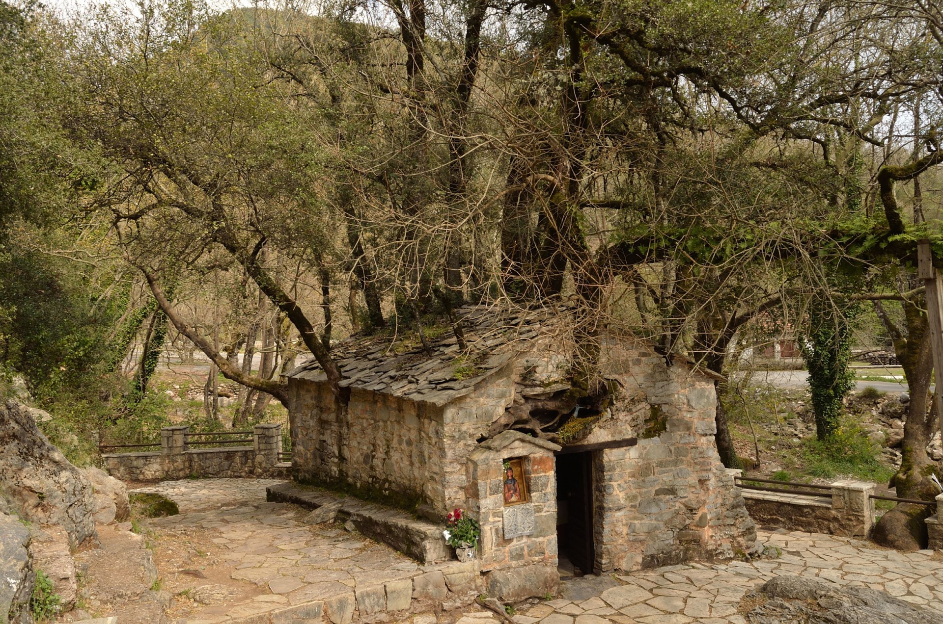 Храм святой Феодоры в горной Аркадии является одним из самых, если не самым, необъяснимых храмов в мире. Сквозь стены маленькой ветхой церкви проросли огромные деревья. Некоторые из которых достигают в высоту 30 метров. Они растут прямо из стен и крыши храма. Данное сооружение